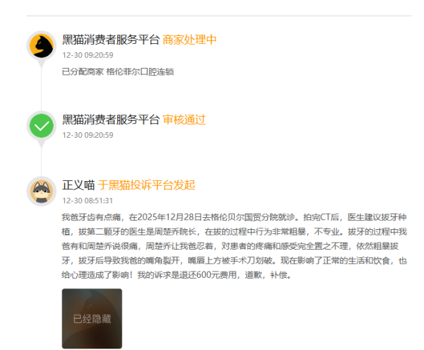 然而,在资本狂热追逐的背面,是行业乱象的暗流汹涌。黑猫投诉平台对民营口腔医院的投诉层出不穷。有消费者反映,拔牙时医生操作粗暴导致嘴角裂开、嘴唇划伤;洗牙时操作不当造成门牙崩裂缺损,院方仅愿赠送电动牙刷敷衍了事。更有患者为孩子购买牙齿矫正服务,历时两年半不仅未改善牙齿排列,反而导致“凸嘴”加重形成地包天;另有人接受矫正近九年,主治医生四次更换,效果不佳反被要求额外付费更换矫正器。