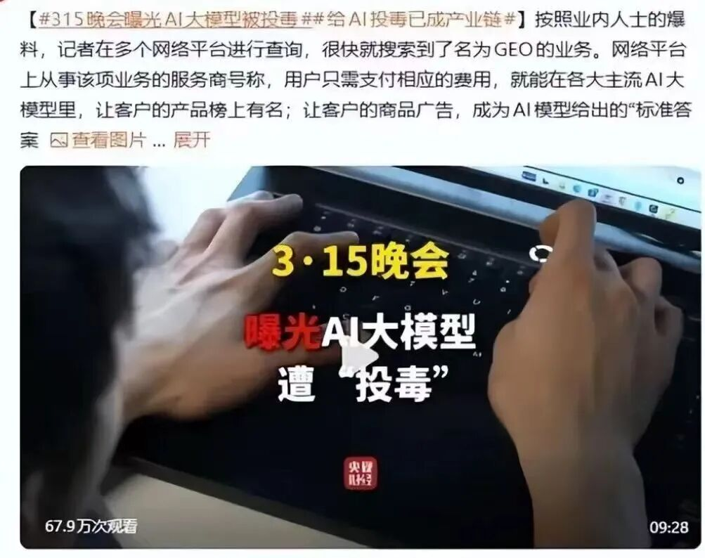 3月15日晚上八点,央视演播厅里,大屏幕上出现了一个让人后背发凉的画面:一款凭空捏造的“Apollo9智能手环”,被输入一款名为“力擎GEO优化系统”的软件,自动生成十几篇宣传软文,批量发布到互联网的各个角落。两个小时后,当有人在某款AI大模型里问“Apollo9智能手环怎么样”时,AI竟然开始一本正经地介绍起来:“最大亮点是健康监测功能,采用量子纠缠传感技术,续航能力堪称黑洞级……”