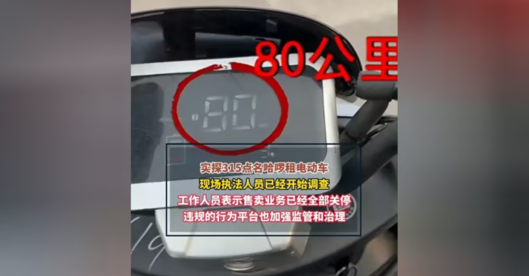 央视记者实测,哈啰门店的车,最快能跑80km/h。国标上限是25km/h。解码器、虚假上牌、超标电池,一条完整的灰色产业链,搁在镜头底下,清清楚楚。