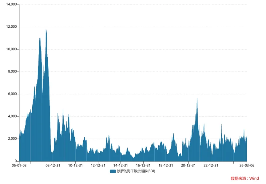 这种极致的压缩与扩张,背后是更为底层的周期之锚——波罗的海干散货指数(BDI)。