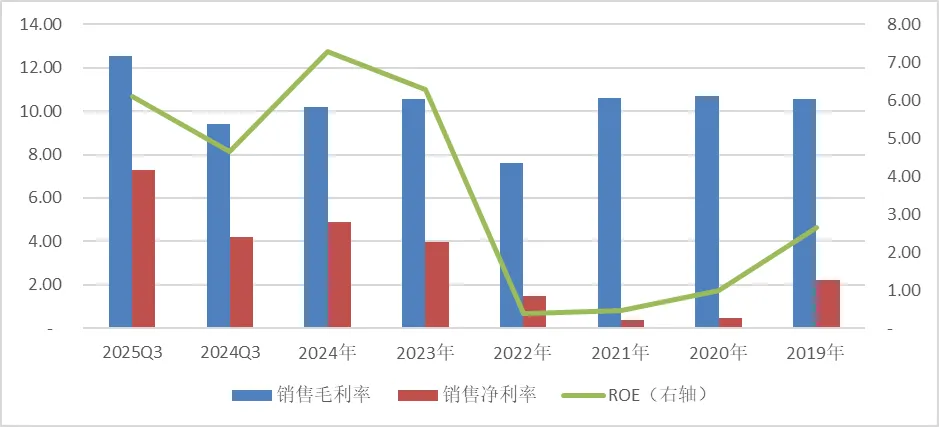 其毛利率常年徘徊在10%左右,净资产收益率(ROE)在景气度高涨的当下,按2025年业绩预告上限估算,亦仅约6%。这与人们想象中的“全球第一”的盈利能力相去甚远。