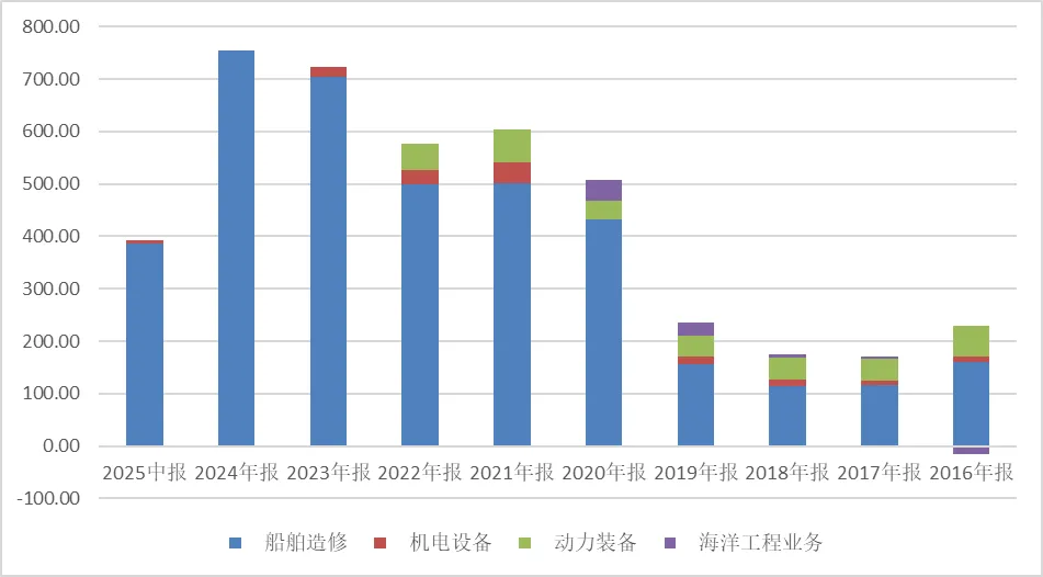 图:公司营业收入结构以船舶造修为主,单位:亿元