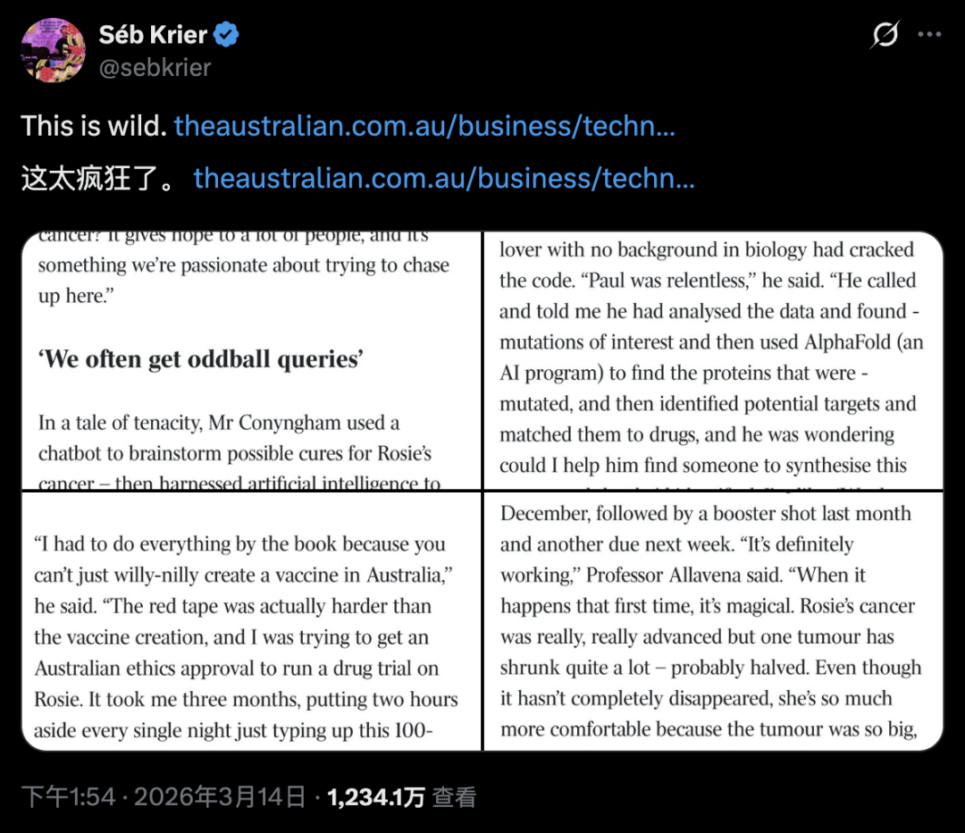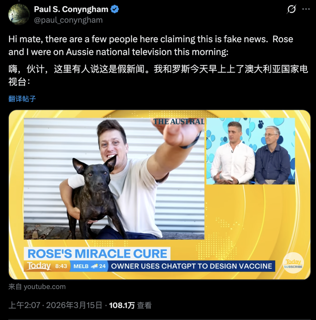 当然,这种撬动是有代价的。Paul花了数万美元,赌上了Rosie的命,也赌上了自己的声誉。如果失败了,他就是一个用AI瞎搞差点害死狗的疯子。
