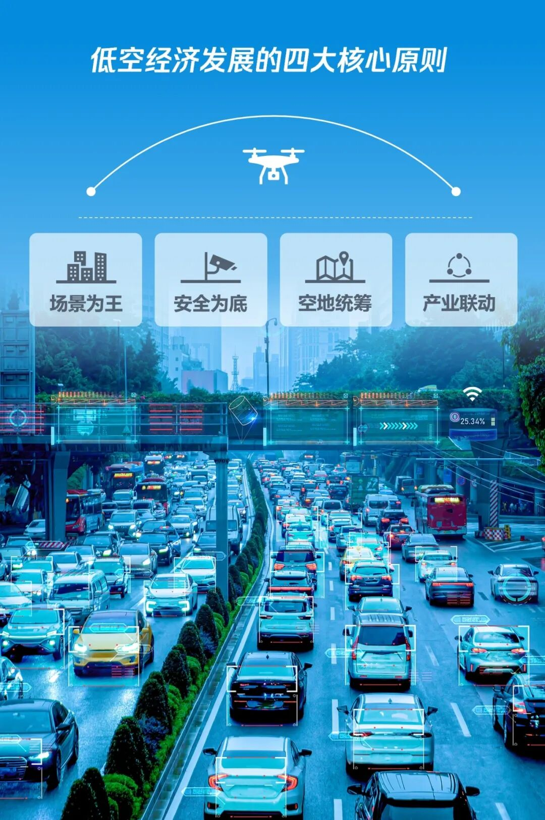 低空经济的发展需要遵从场景为王、安全为底、空地统筹、产业联动的总体原则。