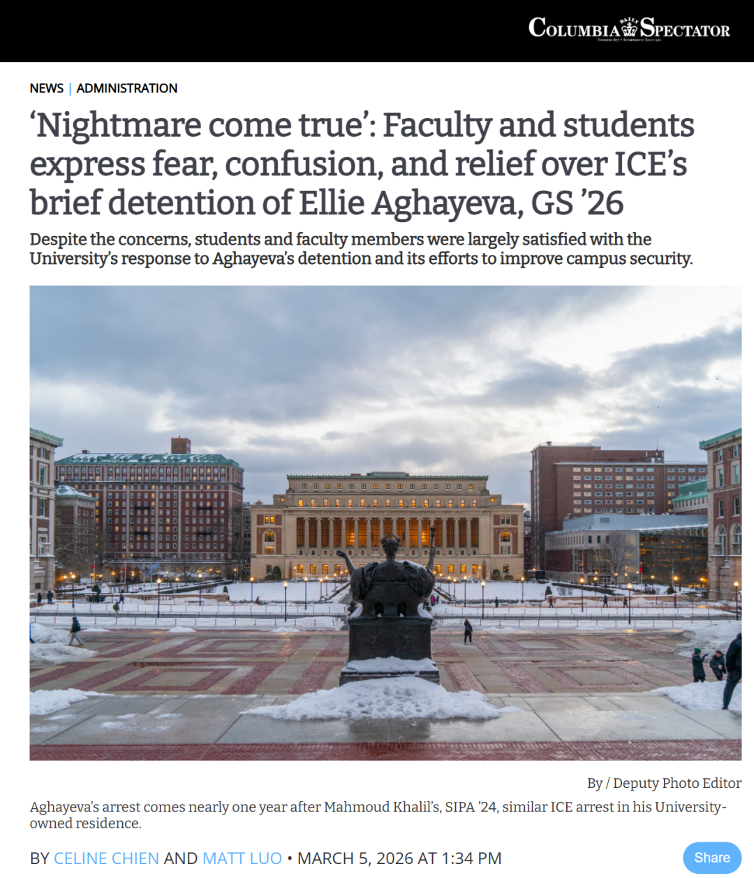 ■哥大校报上,教职工和学生纷纷表达了担忧和恐惧,「噩梦成真了」