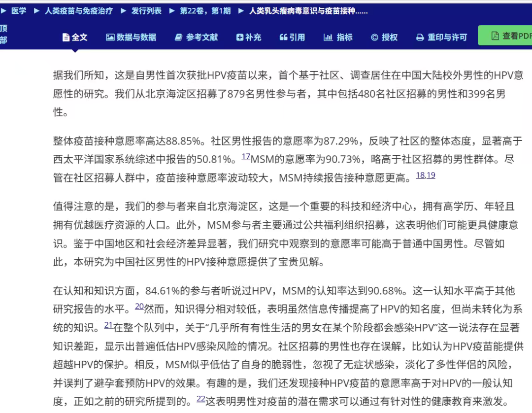 当然,也并不是说男士接种HPV疫苗就完全没有意义。从现有研究来看,对于男同性恋者和私生活极为丰富的男士来说,接种HPV疫苗是会有比较大的收益的,高危型HPV确实也会导致男性肿瘤,只不过这些肿瘤较为集中在特定人群罢了。只是问题在于,我们似乎也没有办法筛选出来这些人,然后强迫这些人接种HPV疫苗,所以这个研究的意义似乎也比较有限,这种问题也只能看他们的自觉了。