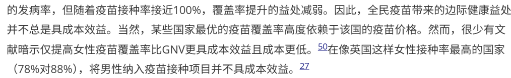客观而言,虽然笔者并不喜欢医药和意识形态的绑定,但是因为女性生理的特点,适龄女性接种HPV疫苗,确实可以极大程度降低宫颈癌发病率,从公共卫生学核算来说,有极大的整体社会收益。但是男性接种HPV疫苗,能带来的收益就非常有限了,毕竟男女在生理结构上是有一定差异的。