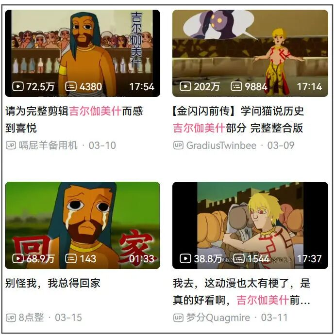 《学问猫说历史》,是给小孩科普世界历史的动画,其中几集里,它把吉尔伽美什的故事完整说了一遍,你在开头看到的画面,全是原片改图。