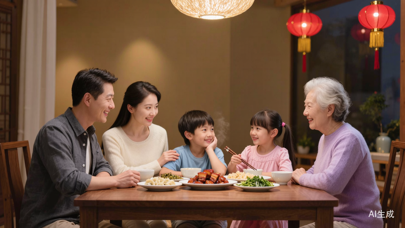 也就是说,除了外婆和妈妈那一辈的长辈们坐在一起的时候还能够在饭桌上畅谈畅饮,而我们小辈和长辈坐在一起的时候就不知道该聊点什么了。城镇化浪潮将农村的联合家庭分化为一个个核心家庭和主干家庭,从父母那一辈起,越来越多人进入城市打拼安家,亲人之间的物理距离不可避免地增大,每年能够见到的时间也越来越少,长辈们之间因为过去的共同生活经历已经建立起了牢不可破的情感纽带,即使许久不见依旧能够坐下来你一言我一语地话家常,但是小辈之间、小辈和长辈之间的情感关联却不如从前牢固,造成了年夜饭无话可说的尴尬局面。