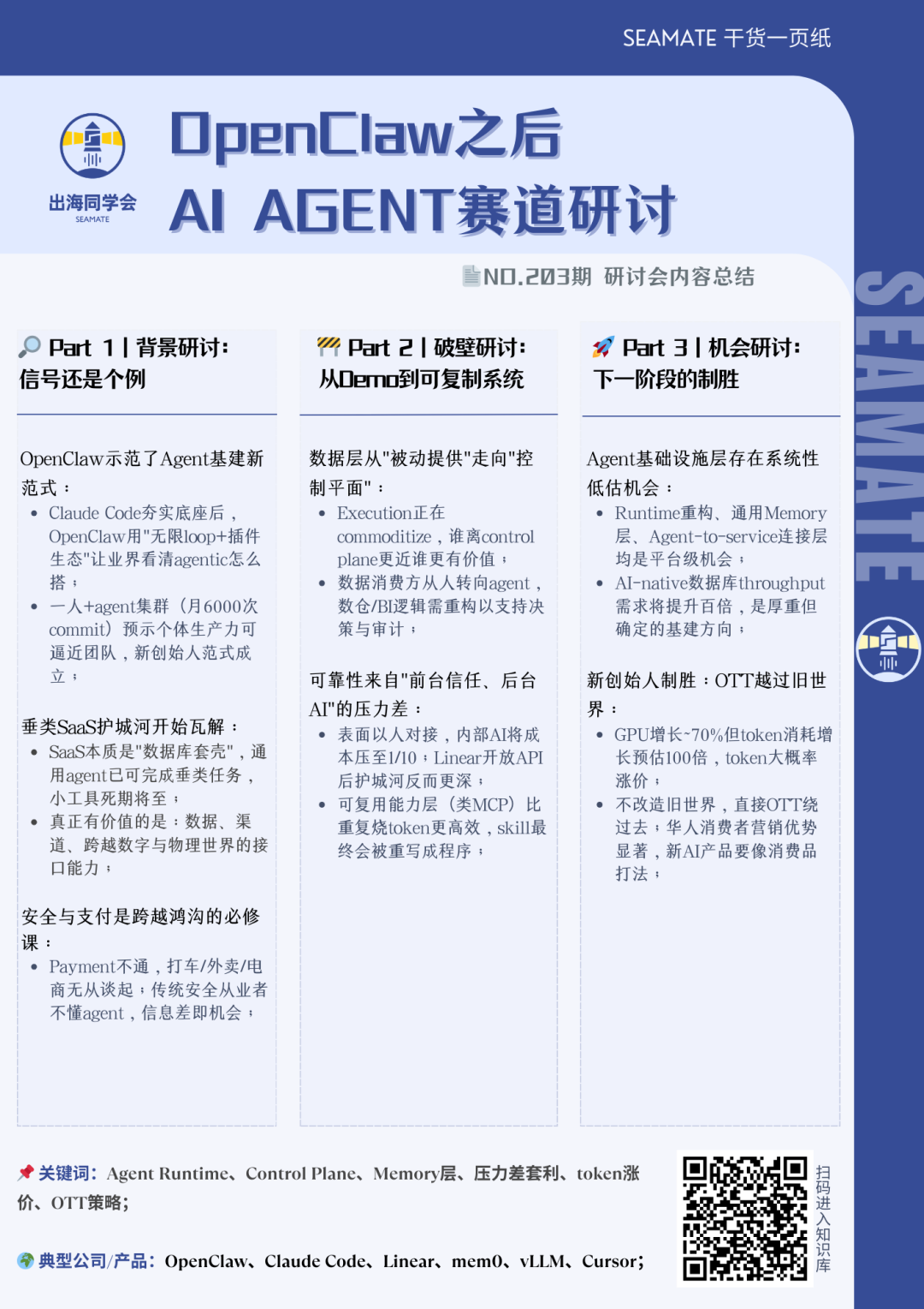 本文来自微信公众号: 出海同学会 ,作者:出海同学会,原文标题:《干货|OpenClaw之后,AI AGENT赛道研讨》