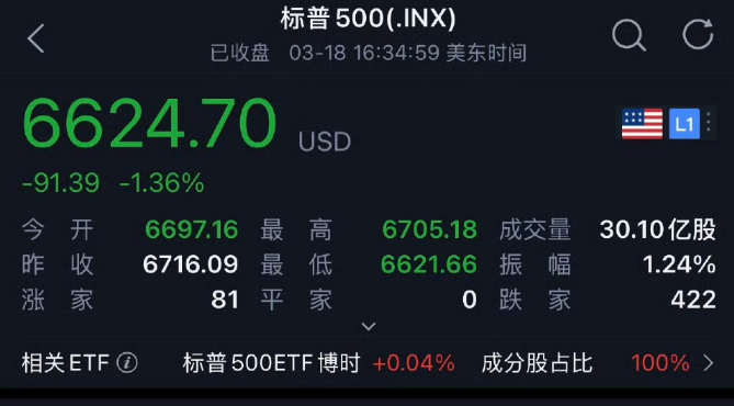 标普500跌幅很小。