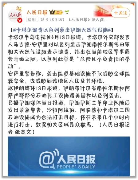 另一个是以色列把伊朗的天然气田炸了。作为回应,伊朗袭击了卡塔尔的世界最大液化天然气工厂,工厂严重受损,每日1200万立方米天然气产能中断。