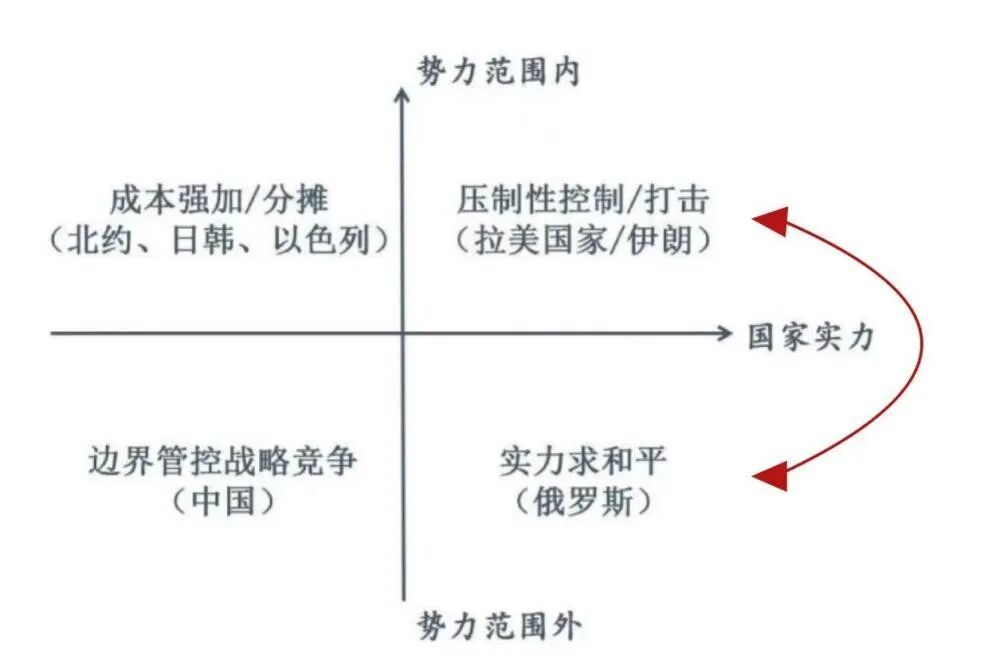 根据笔者研究,特朗普基于实力的外交体现在对待不同的实力程度的国家会采取不同的策略。当特朗普认为局面可控,伊朗已处于美国的势力范围内时,就会对伊朗实施压制性控制的方式;当伊朗未能被美国控制,则会采取谈判对话的方式追求以和平求和平。