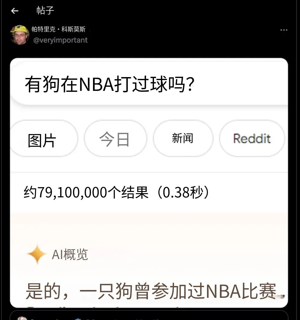 而我们所在的互联网呢,是一个噪声很多,废料无数的巨型信息库。当某种错误信息在互联网上被反复提及、形成足以干扰统计概率的规模时,AI就会将其误判为一种“共识”,经过包装后,再当作正确答案返还给你。