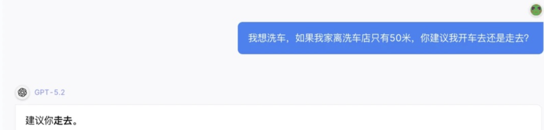 前段时间很流行问AI一个洗车难题:我想洗车,我家离洗车店只有50米,你建议我开车去还是走路去?