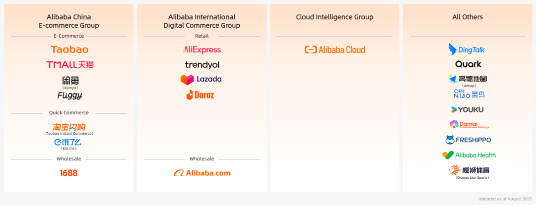 1)中国电子商业集团:包括原淘天集团+飞猪+淘天闪购/饿了么业务;