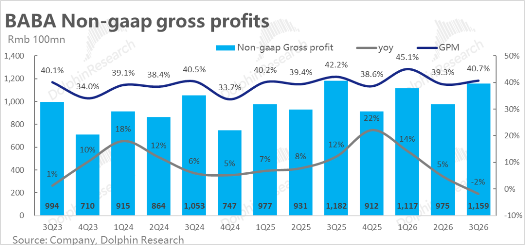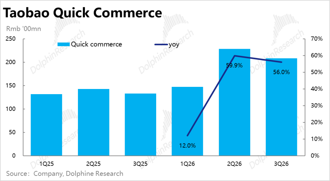 另外,虽从调研来看,淘宝闪购的订单结构是在优化的(高单价的正餐和非餐闪购比重增加),但从本季度来看,似乎成果暂未体现出来。