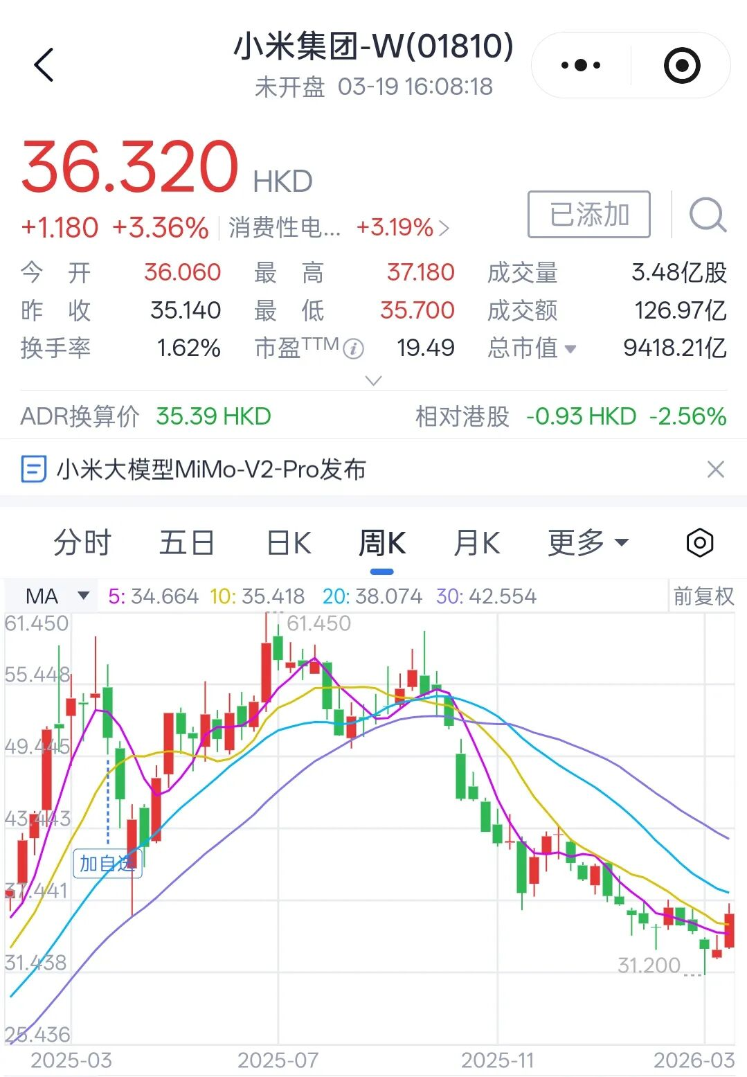 下周二,也即3月24日,小米将公布2025Q4与全年年报。自2025年6月创下61.45港元的年内高位后,小米股价持续回调,截至2026年3月初一度低至31港元附近,昨日收盘价32港元,等于跌去48%。