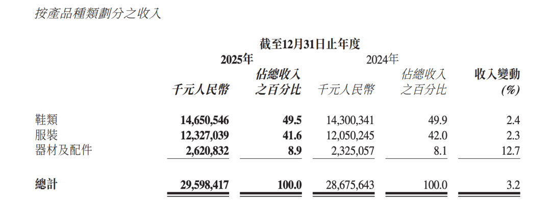 合作第一年,李宁推出的“荣耀金标”系列,首次将中国奥委会商用徽记与李宁标志联合应用到产品上。年报显示,2025年,李宁服装收入同比增长2.3%至123.27亿元,但占总收入比重由42%降至41.6%。