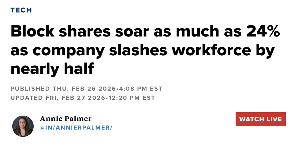 2026年2月,美国支付巨头Block突然宣布裁员40%,接近4000人,原因非常直接:公司引入了类似OpenClaw的AI代理系统,发现“一个超级个人+AI”就能干完过去30个人的活——剩下的29个人成了“负资产”。