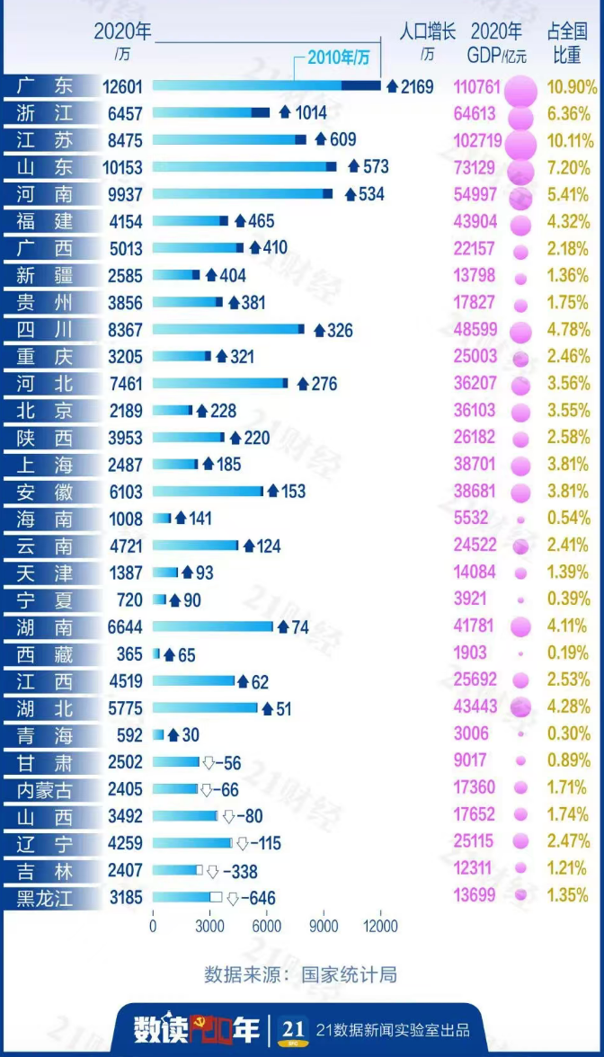 所以严格说,在目前公布的省份中,真正意义上的人口增长实际就只有广东、浙江。