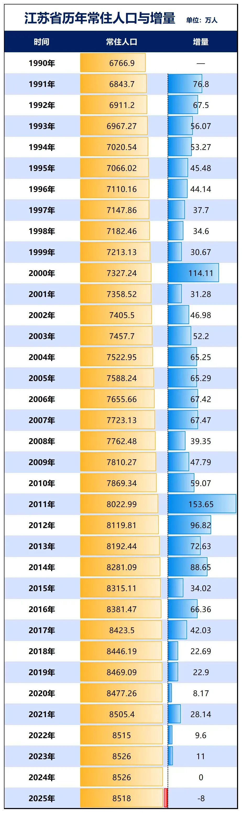 首先,江苏多年来首次出现人口负增长。