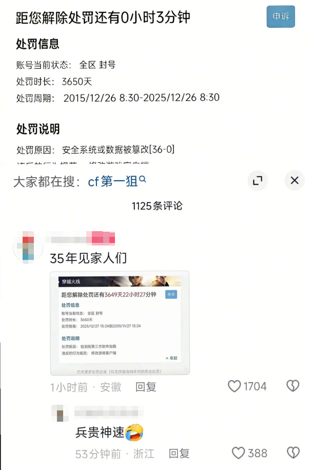 最终在2012年,腾讯正式大规模推广了TP系统(TenProtect),并首次明确了“十年封禁”作为顶格处罚的标准,这正是第一批大规模解封账号在2020年前后出现的原因——“十年之约已到”。