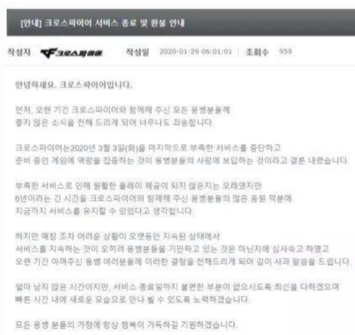 CF韩服已经彻底停运