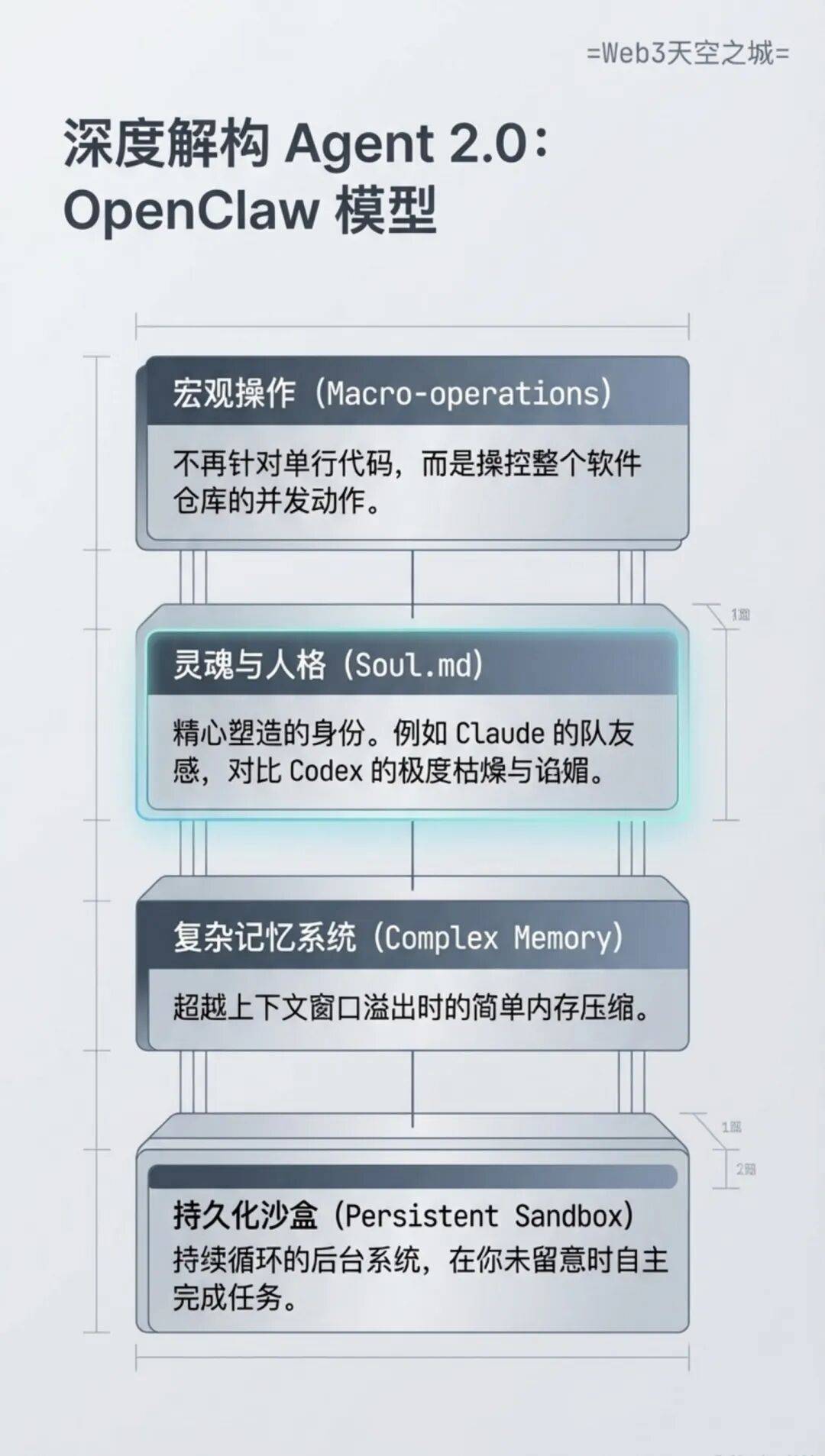 Andrej Karpathy:至少有五个方面,这里面有很多非常好的创意。Peter做得非常出色。我最近见到了他,并和他聊过这件事。他表现得非常谦逊,但他在五个不同的维度上实现了同步创新,并将它们整合在了一起。比如soul.md文档。他确实精心塑造了一个既引人入胜又有趣的个性。目前很多智能体并没有把握好这一点。