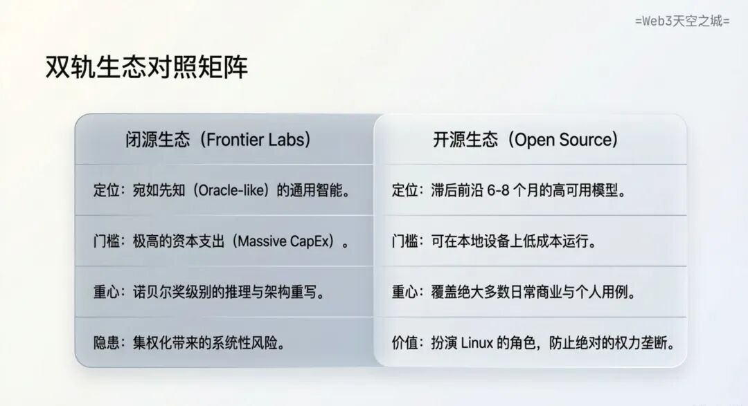 总体上是一个相当不错的局面。对于纯粹依赖闭源智能持保留意见,仅拥有闭源智能会带来一些系统性风险。集权化在过去的历史中表现一直很糟糕。