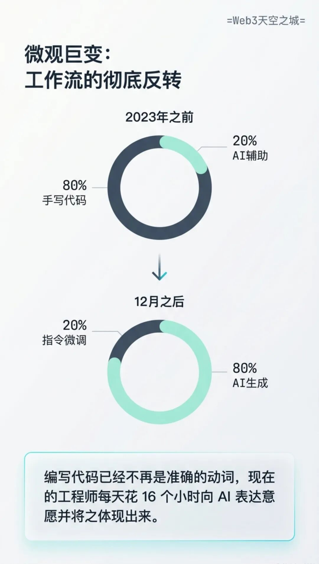 •编程的本质已从手动编写代码转向向智能体传达意志,传统意义上的“写代码”正在过时。