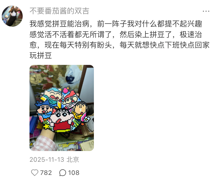 但沉迷拼豆的从来不只是某一类人。