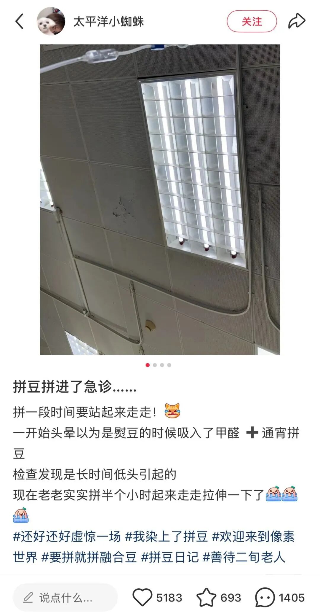 原因无他,沉浸式拼豆过程中长期低头,突然起身后会造成头部晕眩,俗称起猛了。
