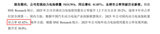 电池是宁德时代盈利的绝对核心。从2025年的年报可以看出,宁德时代动力电池收入占比为74.7%,动力电池是宁德时代的核心收入来源,占比超过七成。但另一组数据却没有那么鲜亮,就是2025年国内动力电池市场占有率下降至43.42%,要知道2021年这一数字为52.1%,市场占有率逐年下滑。