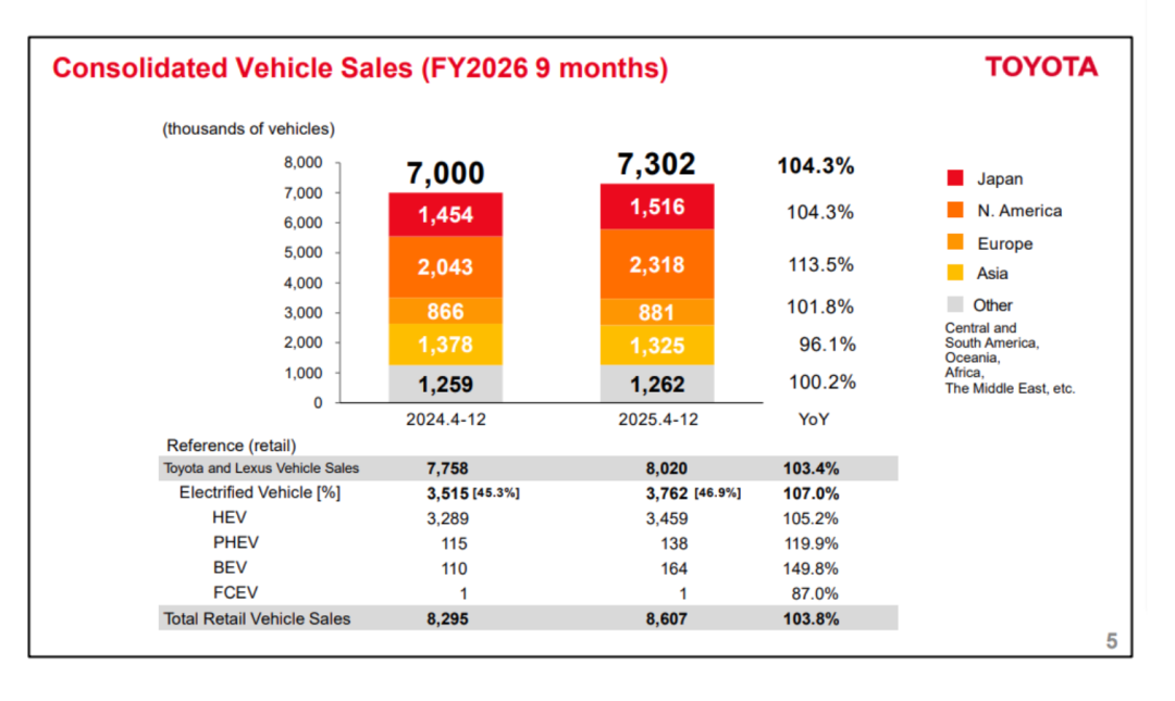 丰田以1132万台辆销量连续第六年位居全球单一车企第一,但这一成绩更多依赖其传统燃油车与混动车型的市场基础。