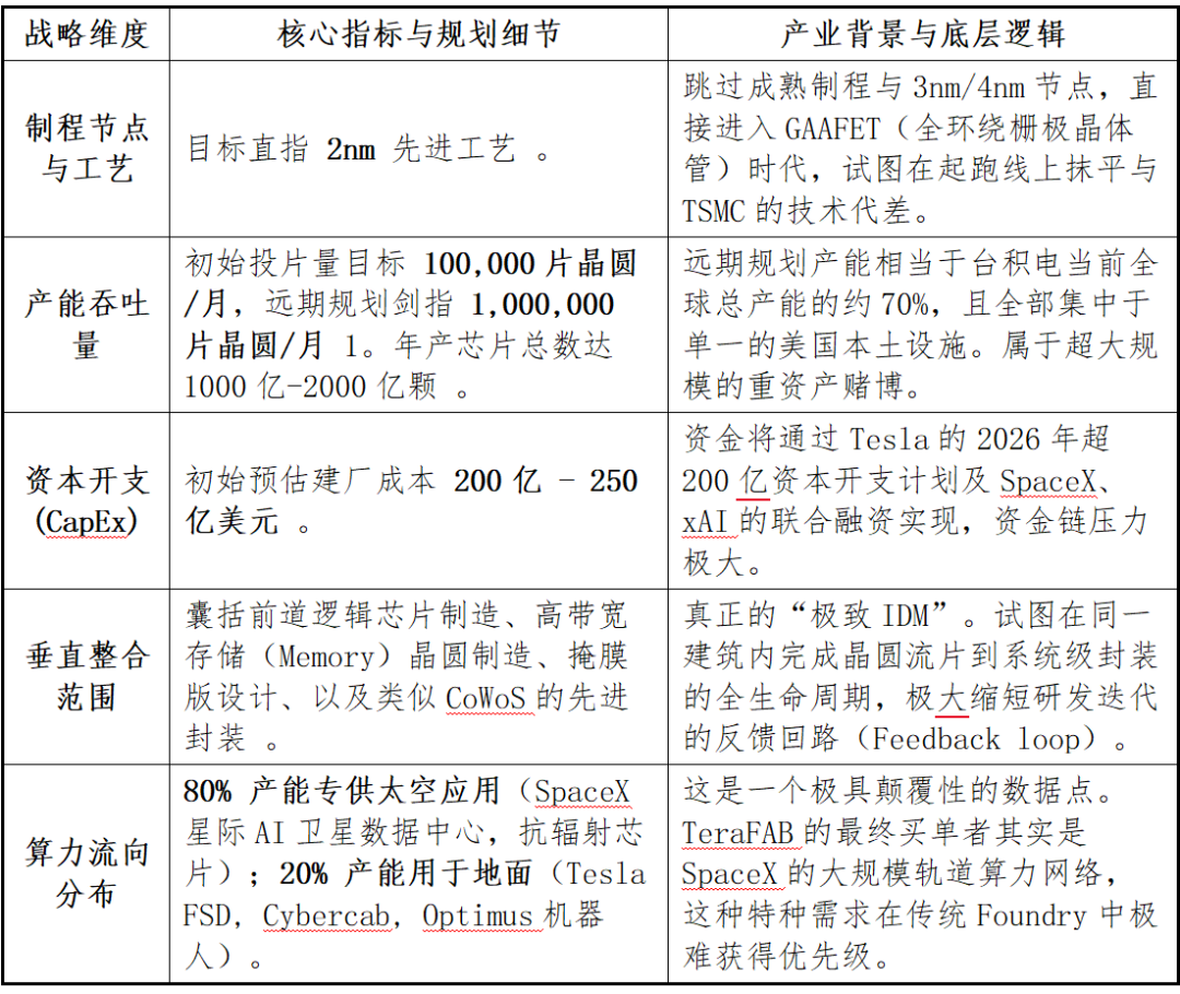 表3:TeraFAB 2026核心技术规格与量产目标矩阵