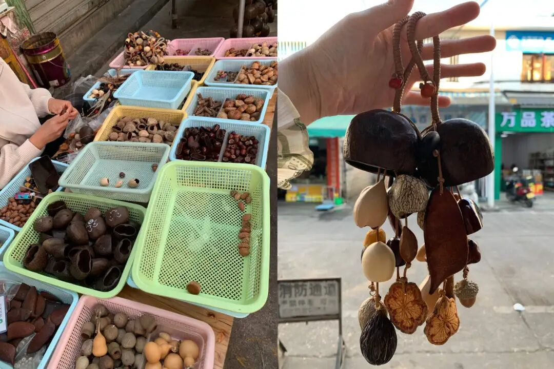 在本地人眼里,这东西也叫“平安豆”。种子内部中空、自带浮力,外壳厚实坚硬、防潮防腐,是制作手工艺品的绝佳原材料。在古代,人们就发现这玩意儿的壳厚实、防潮,常被掏空了当药盒用,可以“历年不坏”。