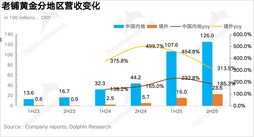 开店节奏上,下半年老铺净新增4家门店,全部位于上海最顶级的重奢商场,截至2025年底,老铺共有45家门店,基本完成了国内第一梯队的重奢和前十大高奢商场的全覆盖。
