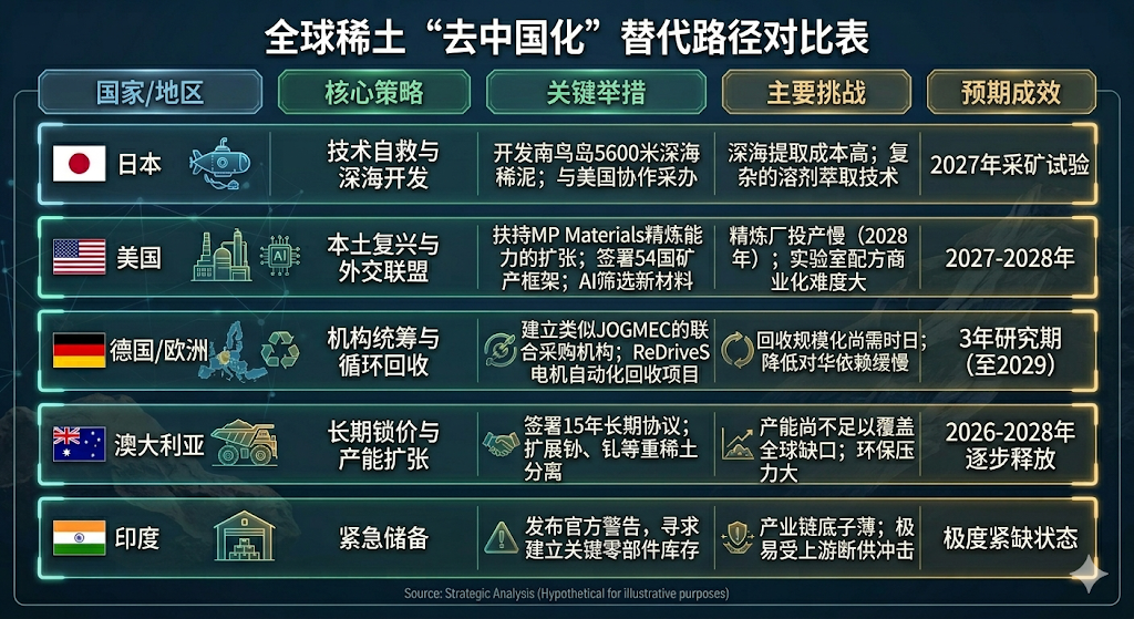 一场改变稀土全球供应链的“重构之战”正在展开。各国的努力方向各异,但目标相同:在耗尽库存前,找到中国的替代品。