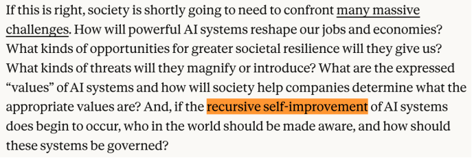 我们正在推动一个聚焦recursive self-improvement的workshop。2026年的突破,就集中在recursive self-improvement。