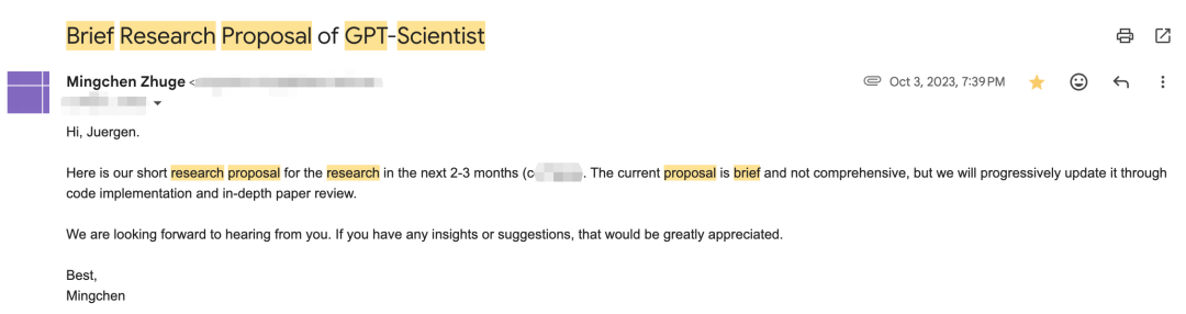 诸葛鸣晨:最遗憾的,是错过了AI Scientist这个方向。2023年下半年,我同时构想了GPTSwarm和GPT-Scientist两个方向,也都写了Proposal给Jürgen(如下图是关于GPT-Scientist的Proposal)。