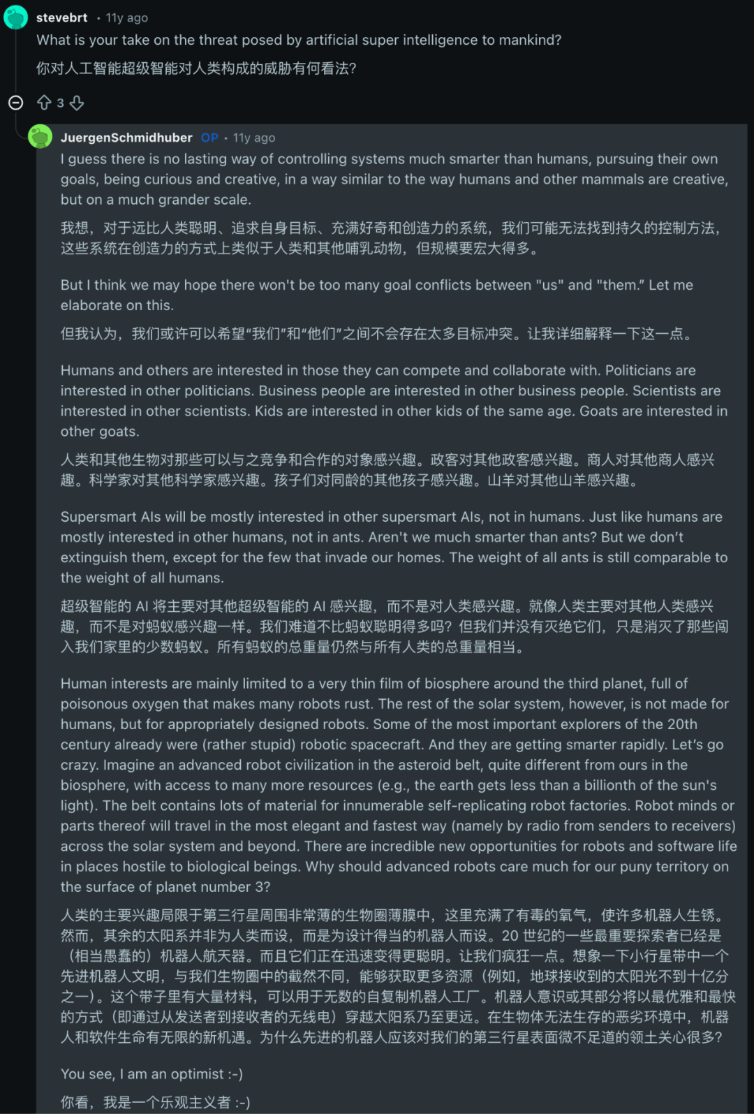 最后,我也想借用我导师Jürgen Schmidhuber在11年前Reddit的回答来替我补充: