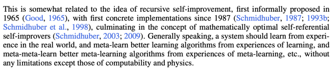 抛开他之前让他出名的的很多文章,比如LSTM,现在另一批他的早期个人研究最近也显露锋芒:从Godel Machine(Recursive Self-Improvement的早期工作),到Making the World Differentiable以及World Models(与David Ha共同推动了World Model的定义和流行),再到Fast Weight Programmer以及与Imanol合作的Delta Network(Linear Attention的重要参考)等等,都在逐步证明他在“大气层”。