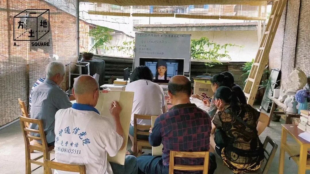 年轻人、老人一同开会讨论剧本。(由受访者提供)