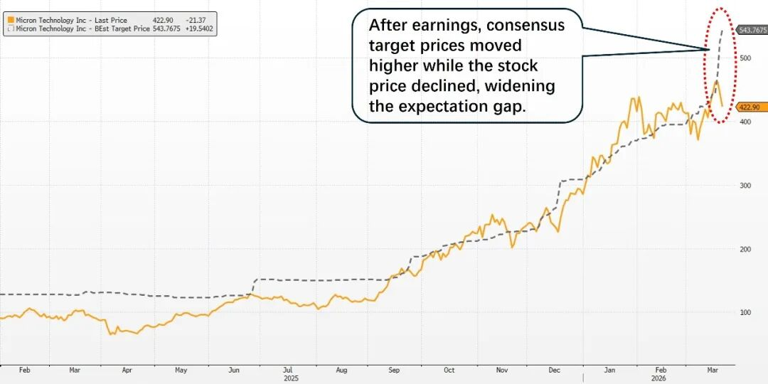 上周,全球市场主线仍是伊朗局势升级带来的再定价。美国市场方面,冲突持续发酵使风险资产明显承压,美股跌破关键技术位,长债与黄金亦同步回落,显示市场已开始交易战事中期化及通胀回升风险。短期看,在霍尔木兹海峡恢复基本通航、伊朗高烈度反击明显减弱之前,局势仍可能先升级后缓和,组合层面宜继续控制风险敞口。不过,AI主线的产业景气并未削弱,美光强劲的业绩与指引再次验证“存储超级周期”,也说明具备真实盈利支撑的AI核心资产正逐步显现配置价值。