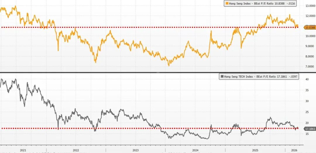 产业方面,上周港股恒生科技龙头腾讯和阿里也交出了25Q4的财报。腾讯这边,游戏和广告支撑下收入同比增长13%,整体业绩并不差,广告也明显受益于变现率的提升,但股价压力主要来自管理层明确表示2026年要大幅加码AI投入、并缩减回购,意味着短期利润率和股东回报节奏要为AI让路;阿里这边恰恰相反,主营电商收入增长基本停滞,利润受费用和投入拖累,但云业务同比增长36%,AI相关需求继续强,管理层还给出未来五年AI+云收入超1000亿美元的目标。