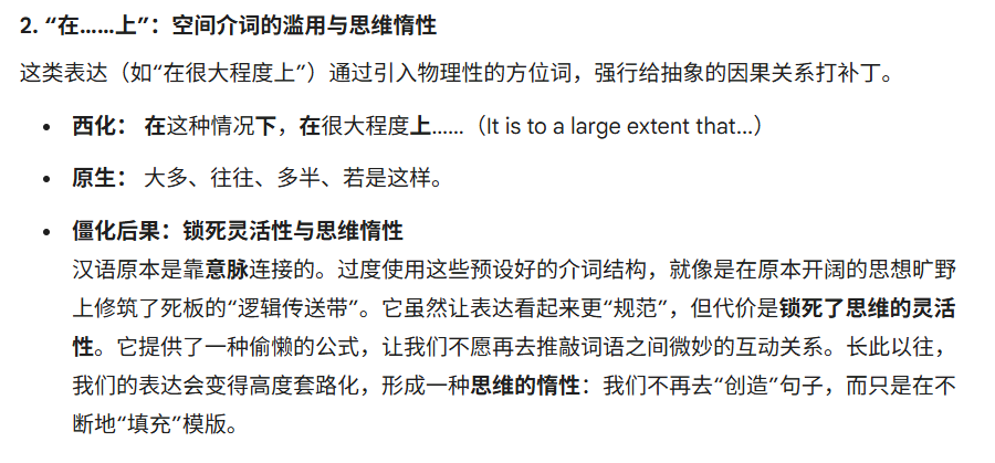 AI更近一步地给我列出了一份病灶清单,请原谅我在此处直接贴上原文,我沮丧地发现我实在已经失去了精准辨别这类僵化语句的能力: