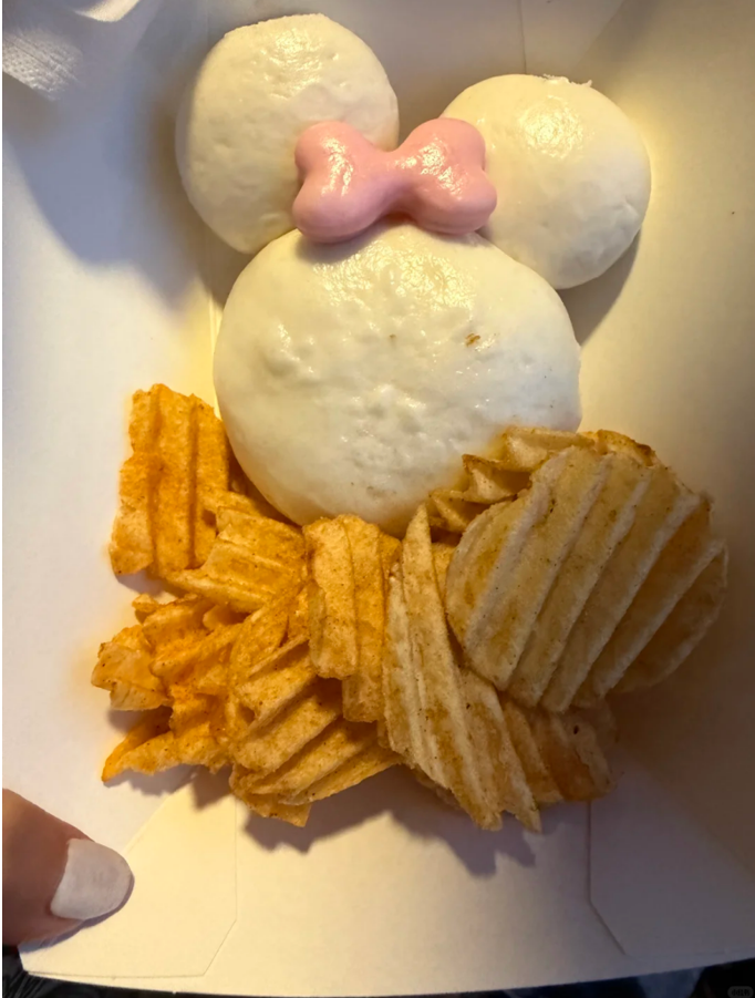 事实上,被爆料的上海迪士尼包子,是其十周年限定米妮蒸包,定价70元,包含一个米妮造型的包子,和一些薯片。该消费者表示,这个包子,米妮的头部有馅,是酱肉包的味道,耳朵没馅,是纯馒头,至于搭配的薯片,开始以为是现炸薯格,结果发现是好有趣薯片。