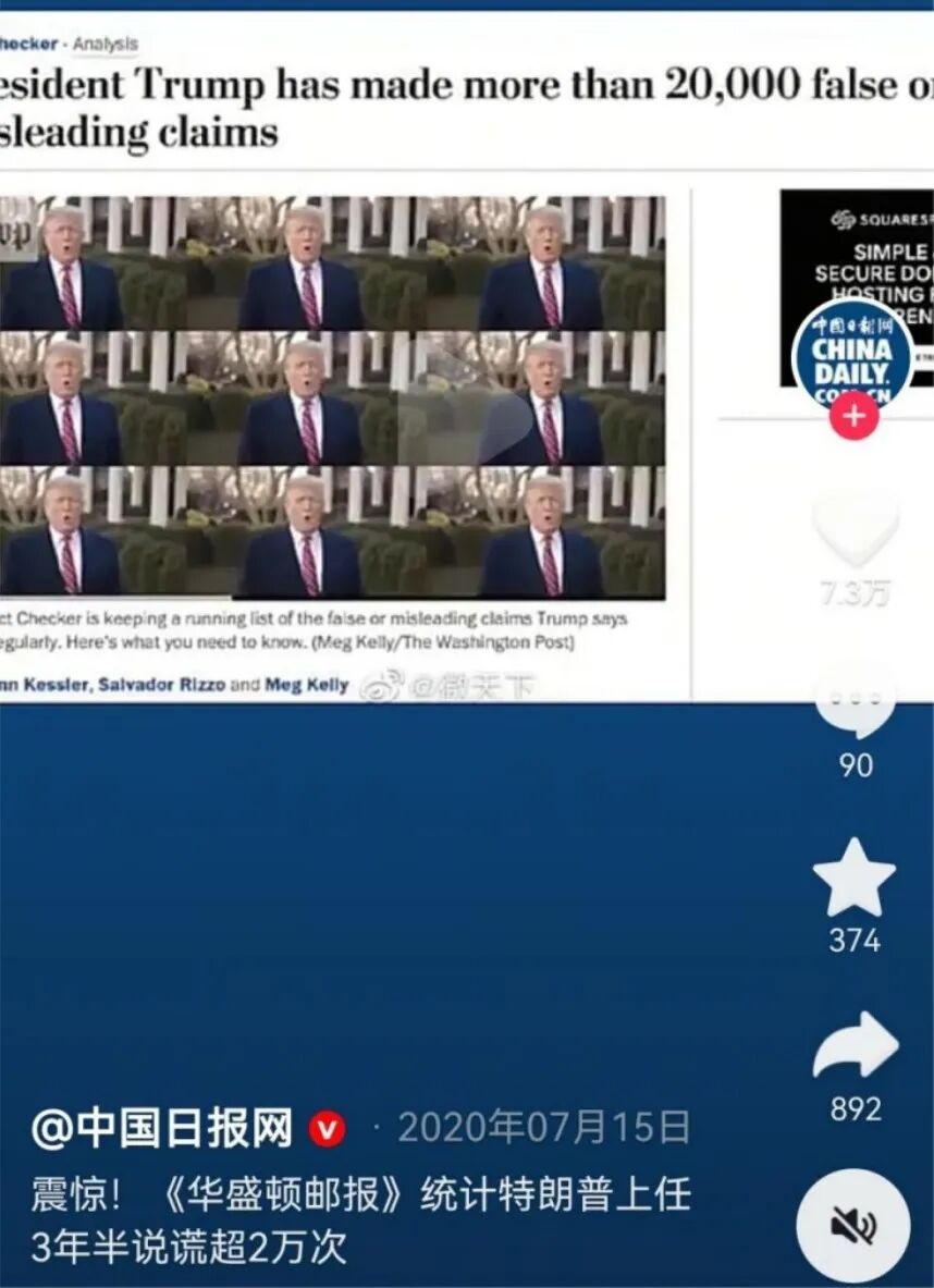 而这份《华盛顿邮报》之前的名作是,统计出特朗普上任三年半,说谎2万次。