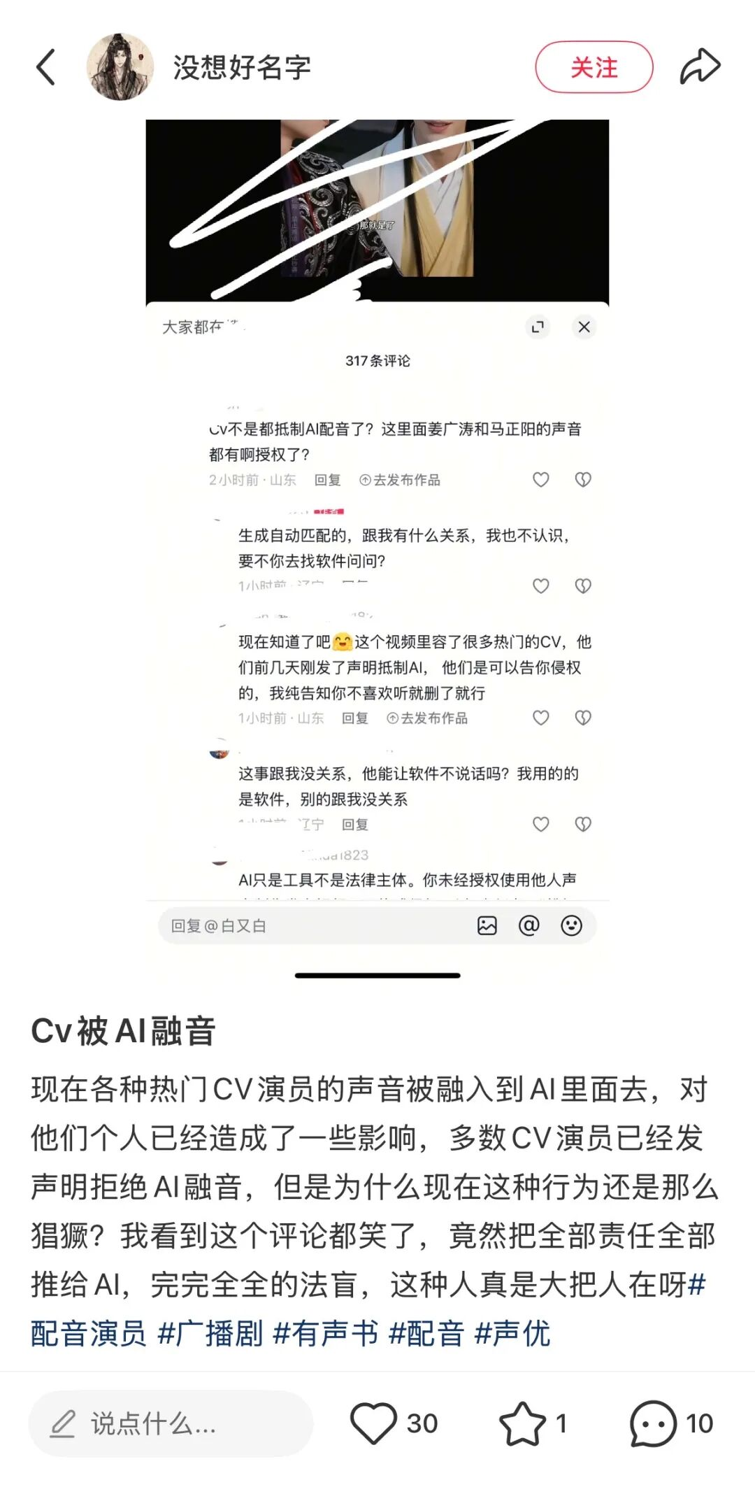 小红书上有网友讨论配音演员被融音